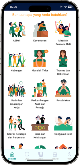 Mood, Journaling, menjadwalkan sesi, hingga konseling langsung di dalam aplikasi bersama Mitra Psikolog profesional berlisensi di seluruh Indonesia. Akses konseling, seminar, dan laporan berbasis online (untuk seluruh Indonesia) dan offline (untuk wilayah JaBoDeTaBek), membantu memaksimalkan layanan kesehatan mental bagi karyawan.